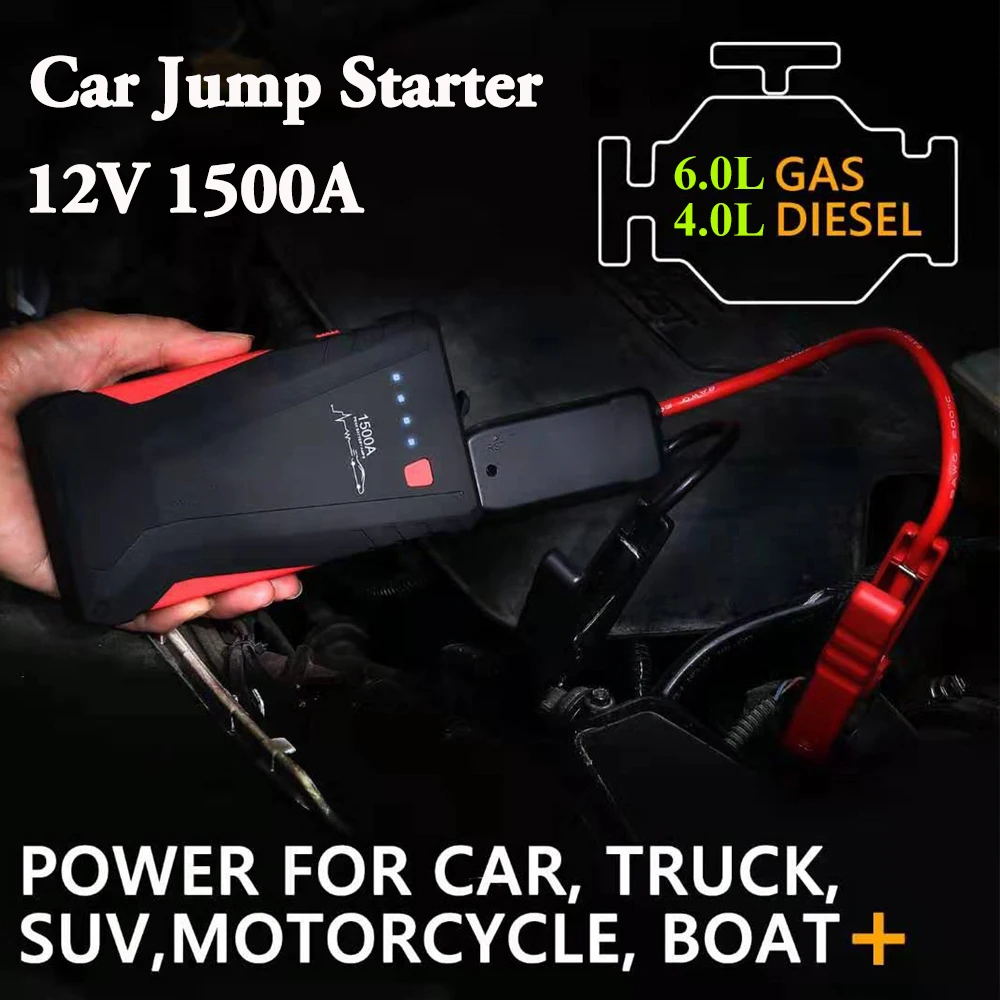 High Power 1500A Car Jump Starter Power Bank 12V Petrol Diesel Starting Device Car Charger For Car Battery Booster Buster LED