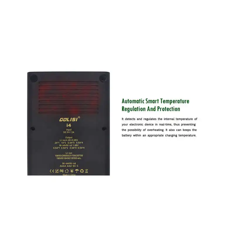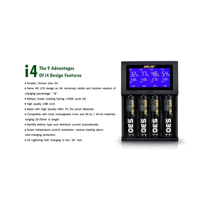 Best Seller Golisi I4 2.0A Intelligent Lcd Charger Intelligent Fast Battery Charger For Li-Ion 18650 26650 2070