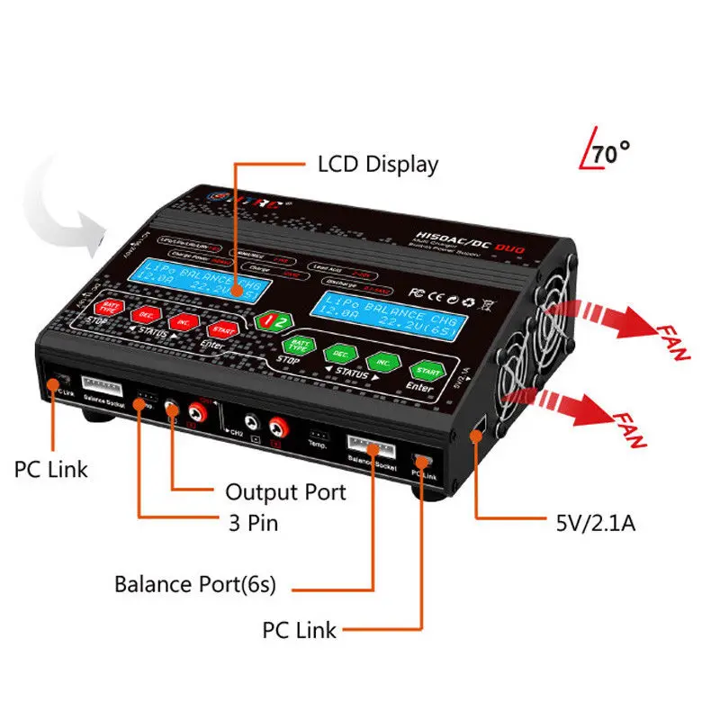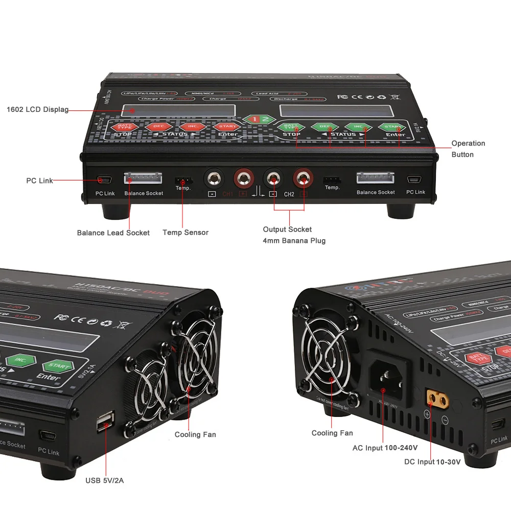 HTRC H120 Double Output 50W/70W 100W*2 10A AC/DC RC Balance Battery Charger/Discharger for Lilon/LiPo/LiFe/LiHV/Pb Battery
