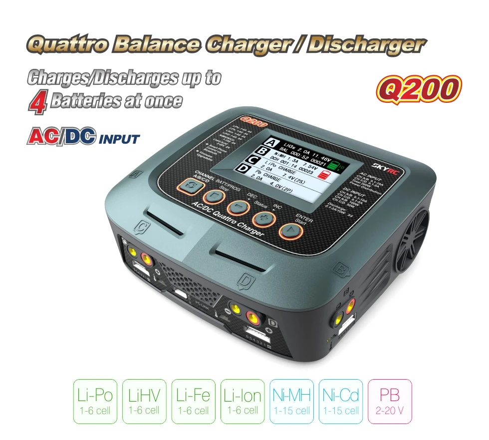 Hot Sale 100% Original SKYRC Q200 1 to 4 intelligent charger/Discharger AC/DC for Lipo/LiHV/Lithium-iron/Lit