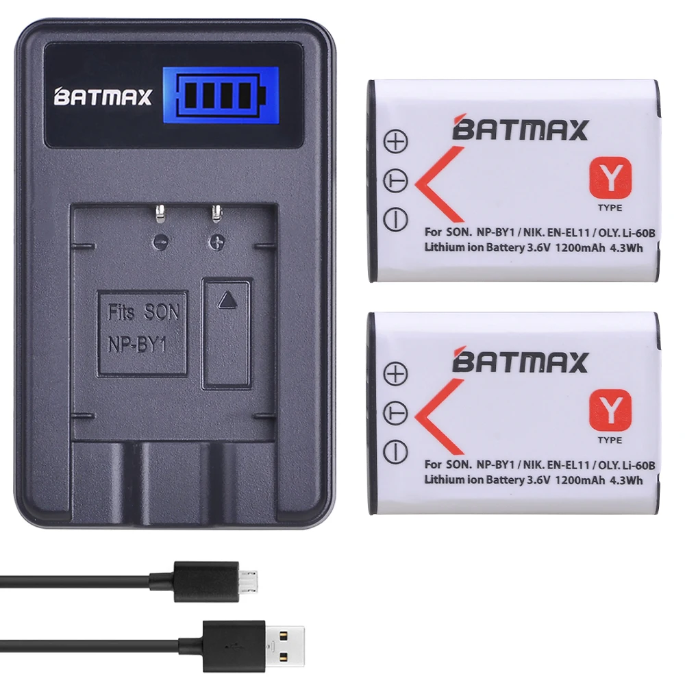 Best Product 2Pcs NP-BY1 NP BY1 Battery + LCD USB Charger for NP-BY1 EN-EL11 LI-60B DLI-78 DB-L70 DB-80 Sony HDR