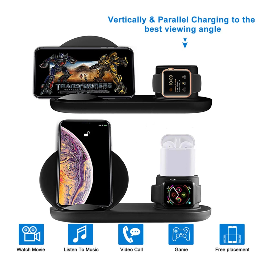 3 in 1 Wireless Charger Stand for iPhone X 8 XS Max Fast Charger Dock Station for apple Watch 4 3 2 1 Airpods for Samsung S10 S9