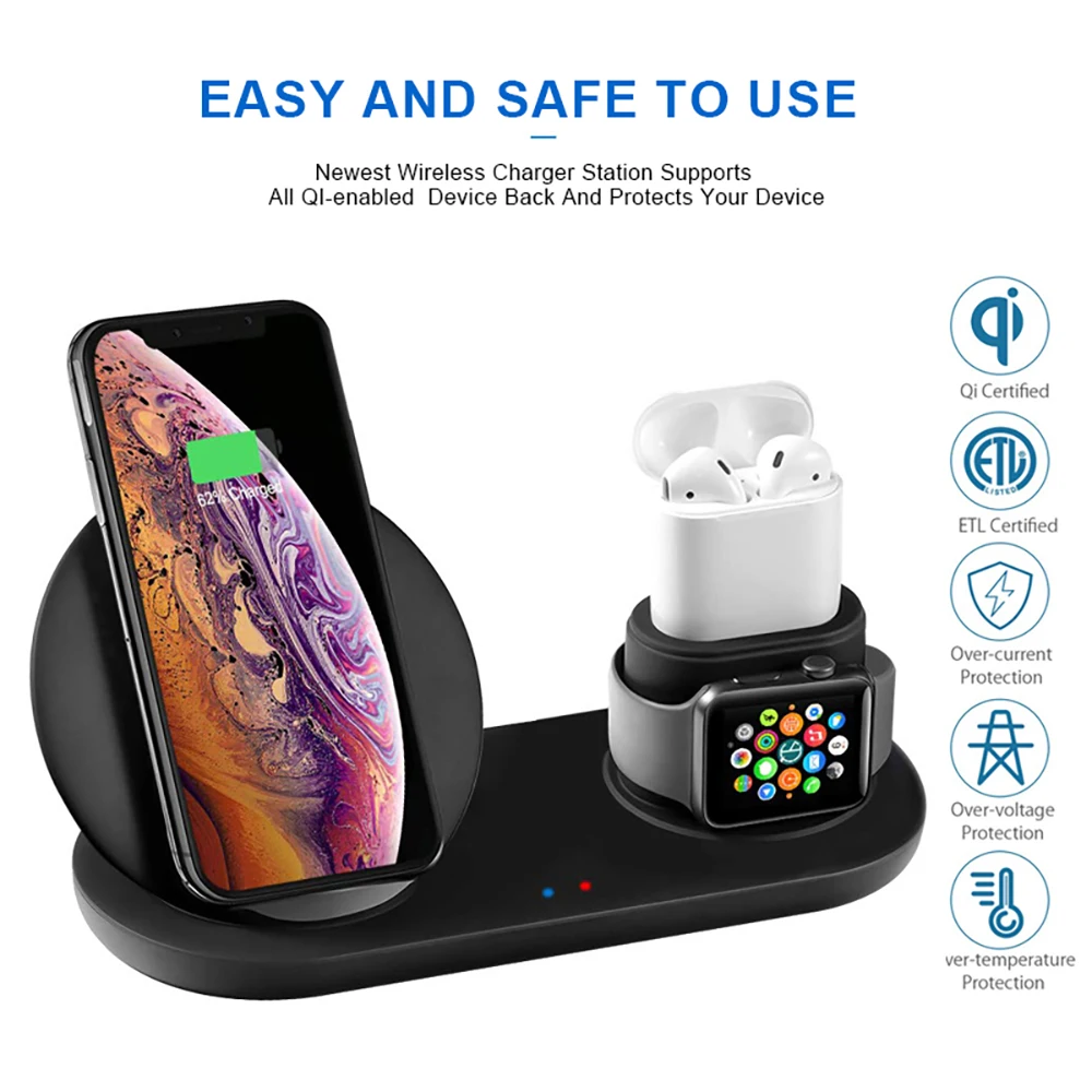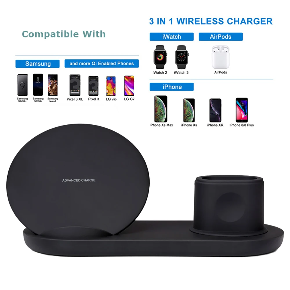 3 in 1 Wireless Charger Dock Station For iPhone XR XS Max 8 10W Fast Charging for Apple Watch 2 3 4 For AirPods For Samsung S10