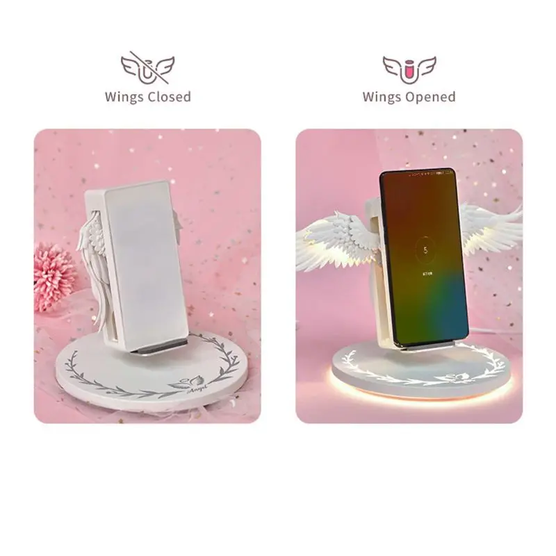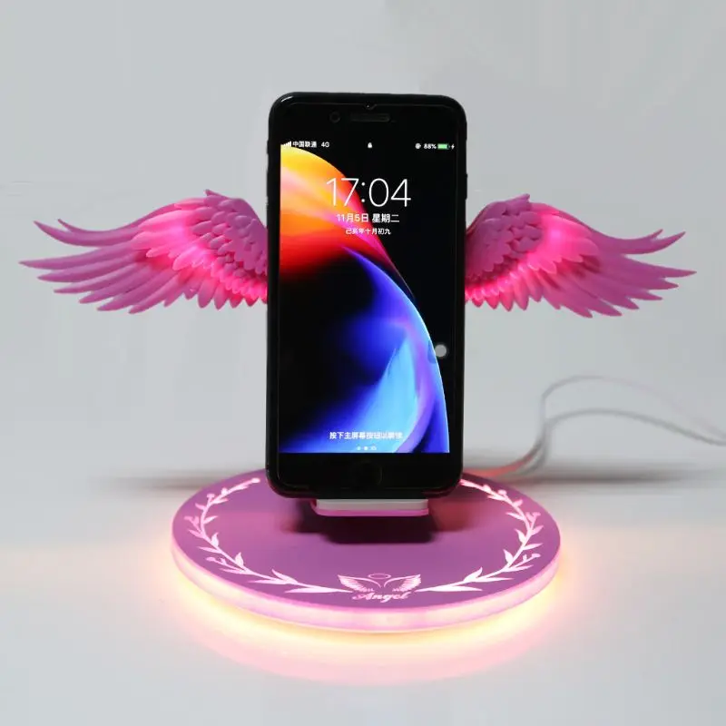 10W Color LED Angel Wings Qi Wireless Fast Charger Stand Holder for Mobile Phone