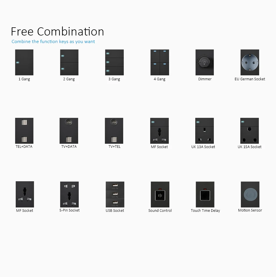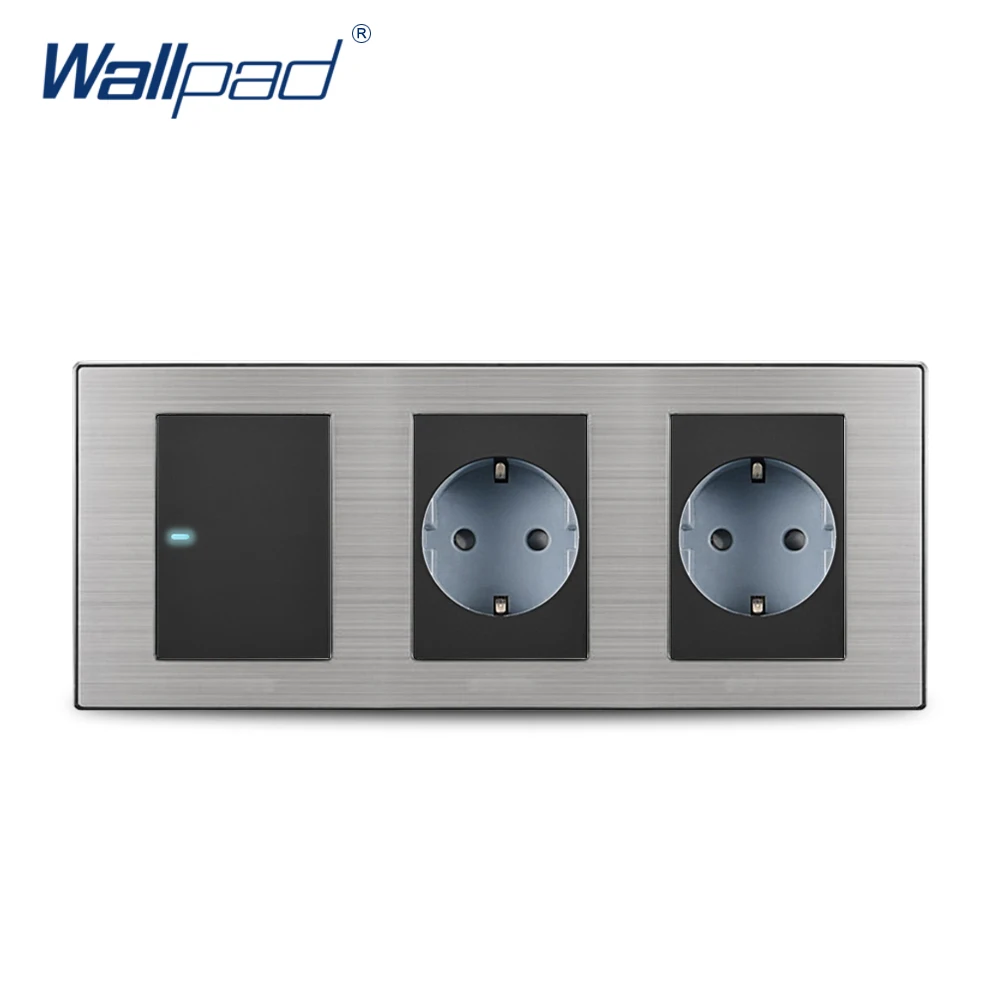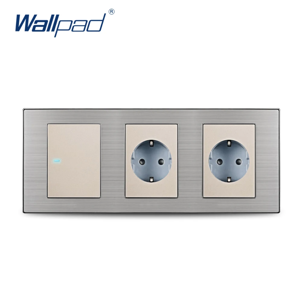Buy Now 2019 Wallpad Hot Sale 1 Gang 2 Way Switch With 2 EU Socket Schuko Luxury Wall Electric Power Outlet