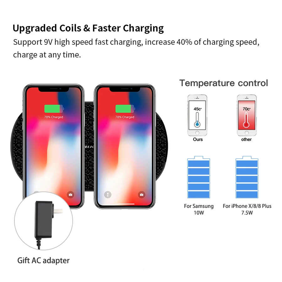 Best Deal Fast Wireless Charger 10w Nillkin for 2 Phone Qi Wireless Charging Pad for iPhone XS/X/8 Mi 9 For S