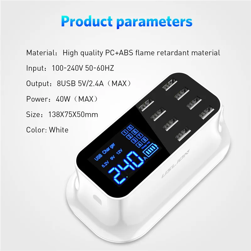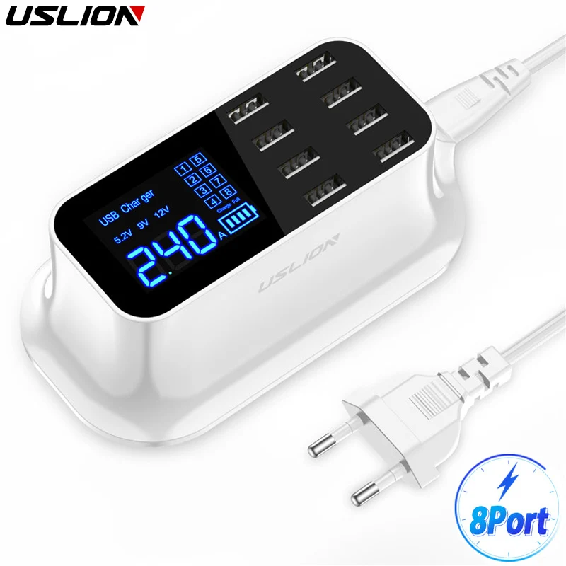 Hot Sale USLION 8 Ports USB Charger LED Display Quick Charge Fast Charging Adapter For iPhone Tablet iPad Sa