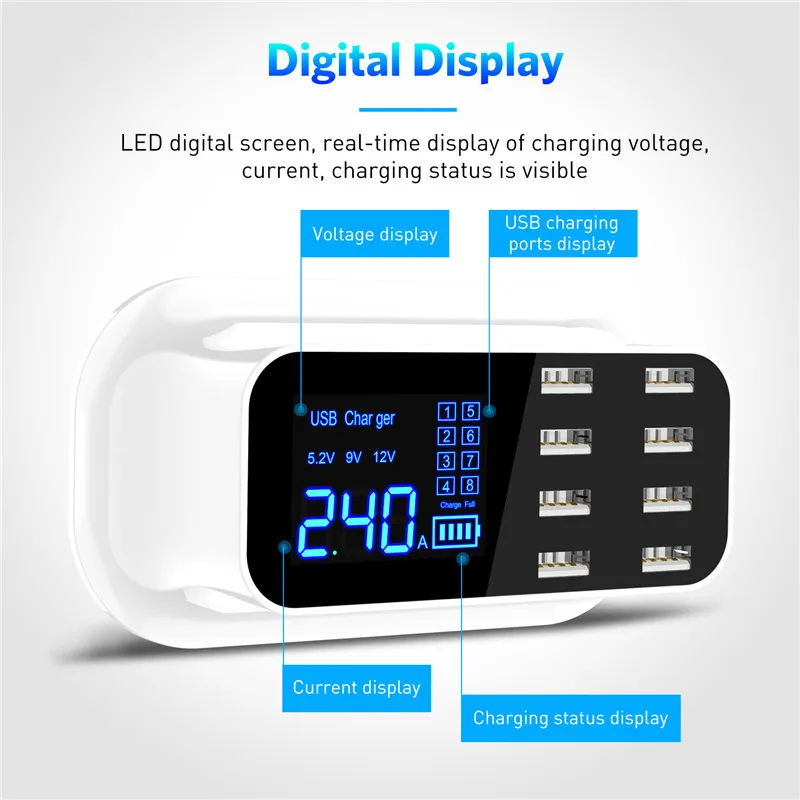 Best Product USLION 8 Ports USB Charger LED Display Quick Charge Fast Charging Adapter For iPhone Tablet iPad Sa